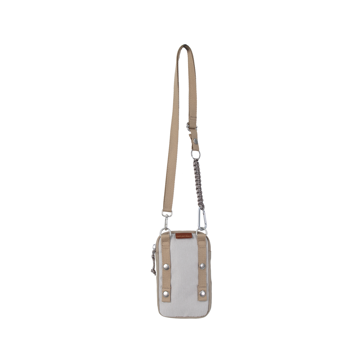Knot is a phone bag with a detachable macrame square knot charm, which can be used as a keychain as well. Front pockets can allow you to store earphones and sundries with ease. With the square knot keychain, Knot can easily be one of your lightest yet well-equipped bags. You can also take off its straps and equip Knot to other bag styles as a gadget pocket.